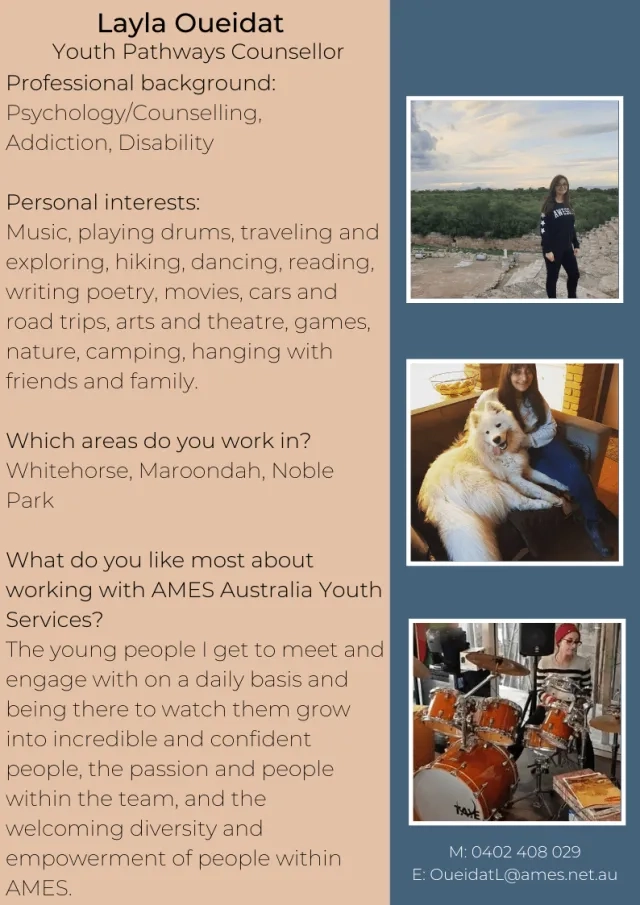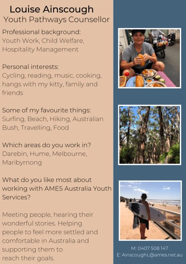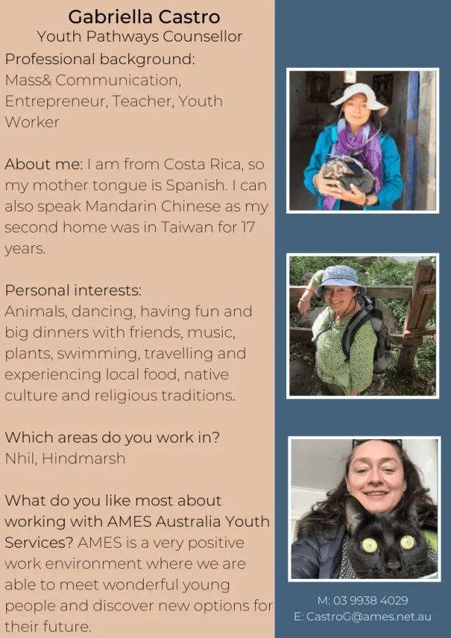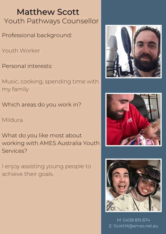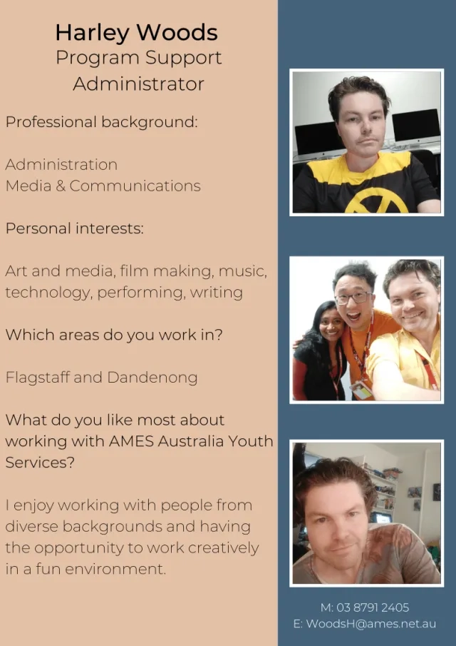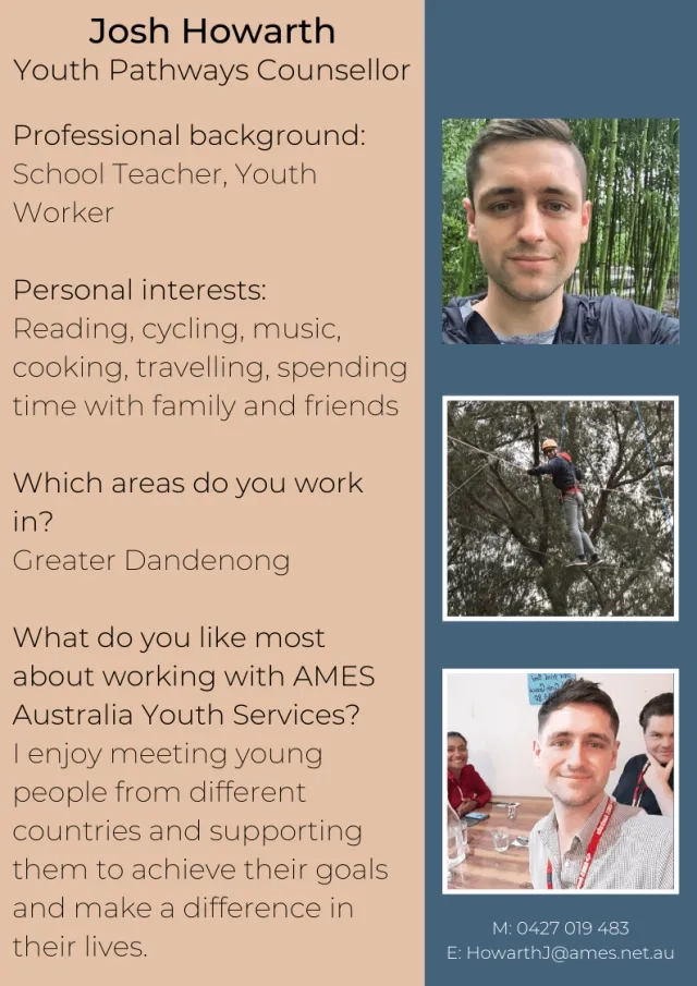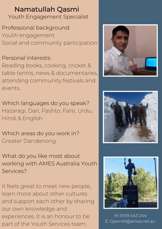 Back to Blog Home Blog Current: Meet Team AMES Youth Services Community and Social Participation 27 April 2020 Meet Team AMES Youth Services Please stay tuned with #AMESAustralia to get the latest updates on social media. AMES Blog Community and Social Participation 02 Sep Five quick things you need to know about migration to Australia Community and Social Participation 15 Jun Remarkable Refugees - Celebrating Refugee Week 2025 Community and Social Participation 28 May Opinion: Migration should be part of the post-election conversation Community and Social Participation 28 Apr Volunteers helping refugees, migrants build new lives in Mildura Previous Next